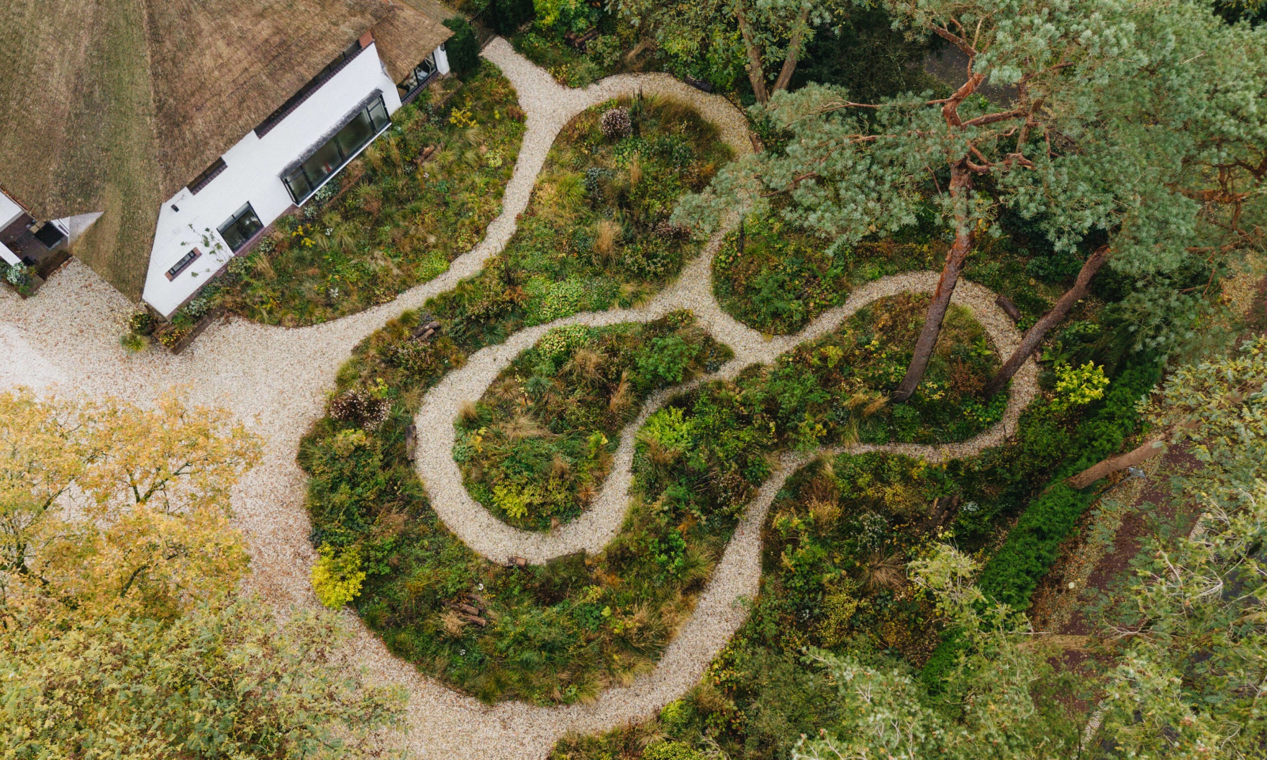 We chose gravel for the paths and car park to blur the lines between the driveway and the garden. This design choice allows the planting and overall garden aesthetic to take centre stage, shifting focus away from the functional aspects of parking. Previously, the car park’s brick surface drew undue attention; the new design redirects focus to the natural landscape, sparking curiosity and encouraging exploration. Additionally, we introduced larger planting areas to enhance the views from both inside the house and the entrance, enriching the overall experience of approaching the property.