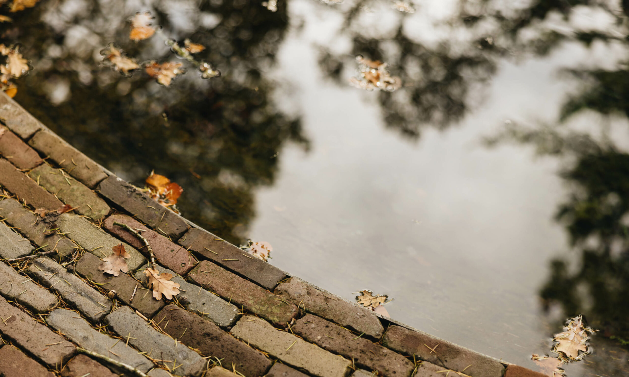 The existing rectangular water feature pond was retained in the new design. Originally surrounded by paving, we redesigned it to be integrated into the planting, softening the hard landscape elements and creating a more natural and inviting environment. The planting scheme was meticulously designed to complement the brick tones in the herringbone paths. It features Fagus sylvatica ‘Purpurea,’ Aquilegia vulgaris var. stellata ‘Black Barlow,’ and Astrantia major ‘Claret,’ which introduce rich purple and red hues through their foliage and flowers. These perennials emerge through a sea of evergreen Sesleria nitida, creating a cohesive and lush display throughout the year.